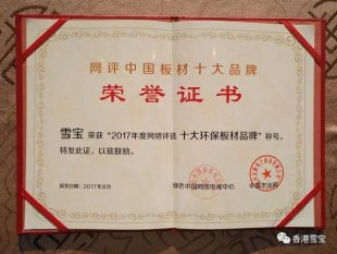 - 捷報(bào)頻傳!香港雪寶榮膺“十大環(huán)保板材品牌”!