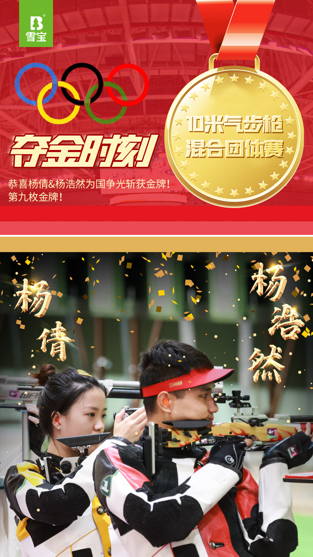 - 祝賀楊倩和楊皓然獲得2020奧運(yùn)會10米氣步槍混合團(tuán)體冠軍