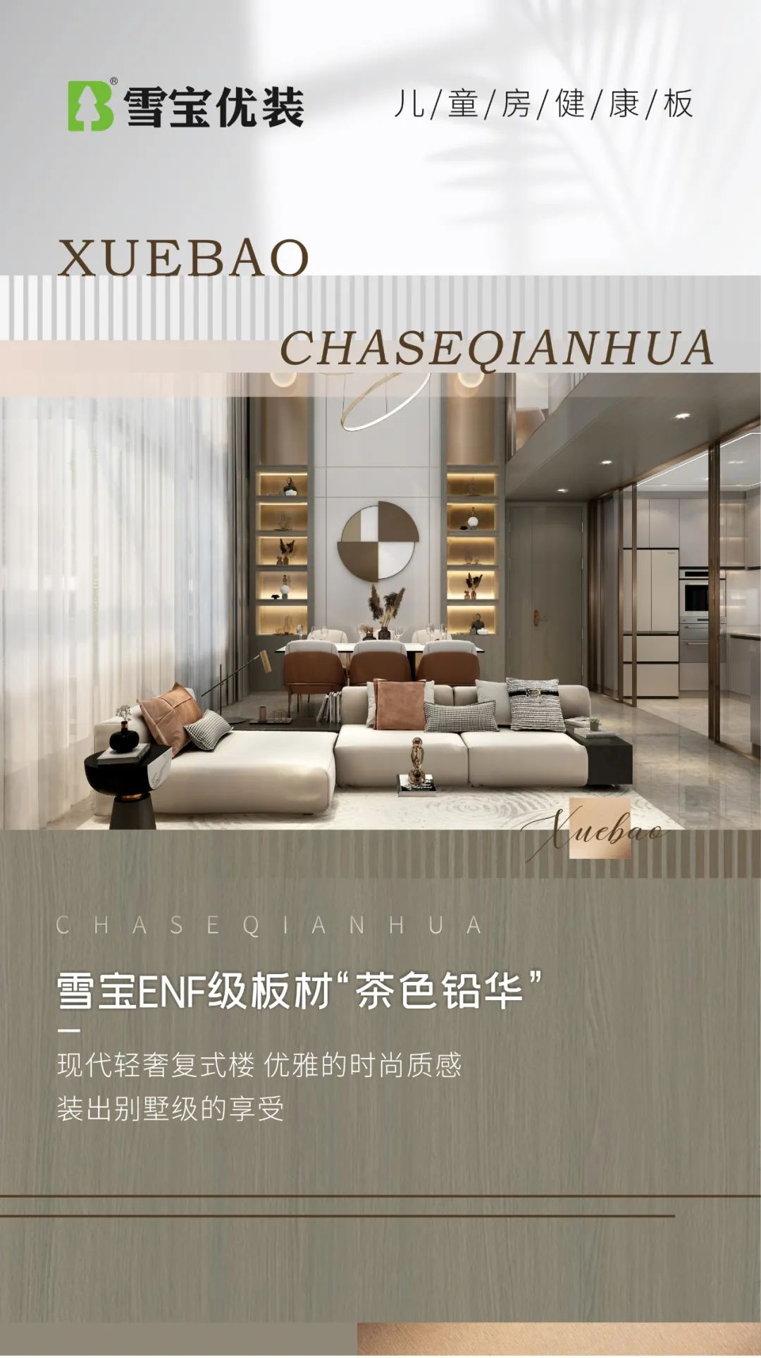 - 雪寶ENF級(jí)板材“茶色鉛華”,現(xiàn)代輕奢復(fù)式樓,優(yōu)雅時(shí)尚質(zhì)感