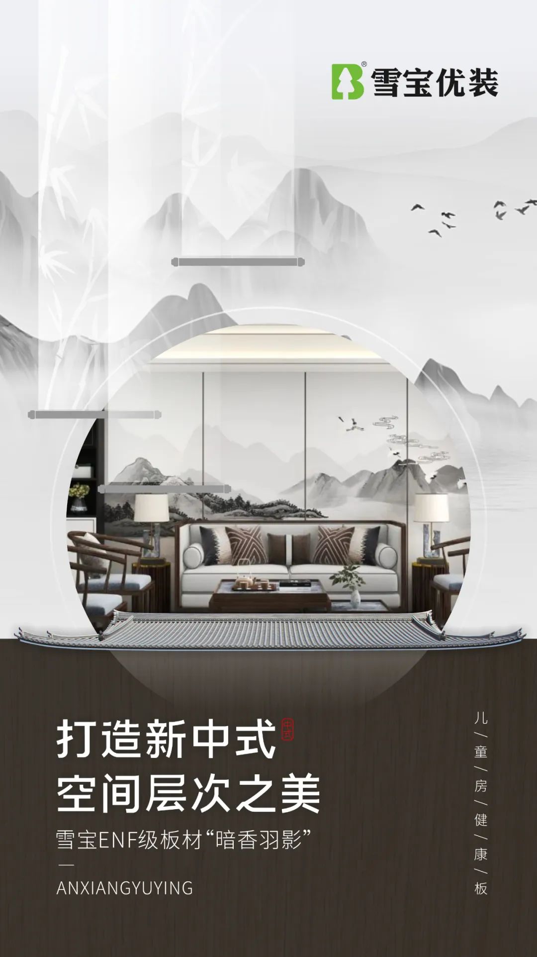- 雪寶ENF級板材“暗香羽影”,打造沁人心脾的新中式空間層次之美