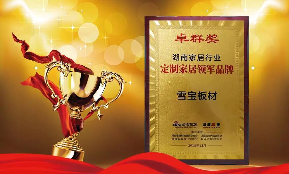 兒童房健康板雪寶板材榮獲“湖南家居行業(yè)定制家居領(lǐng)軍品牌”
