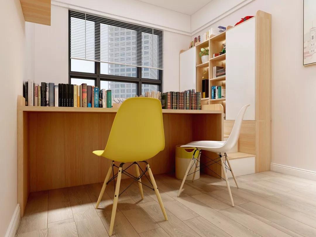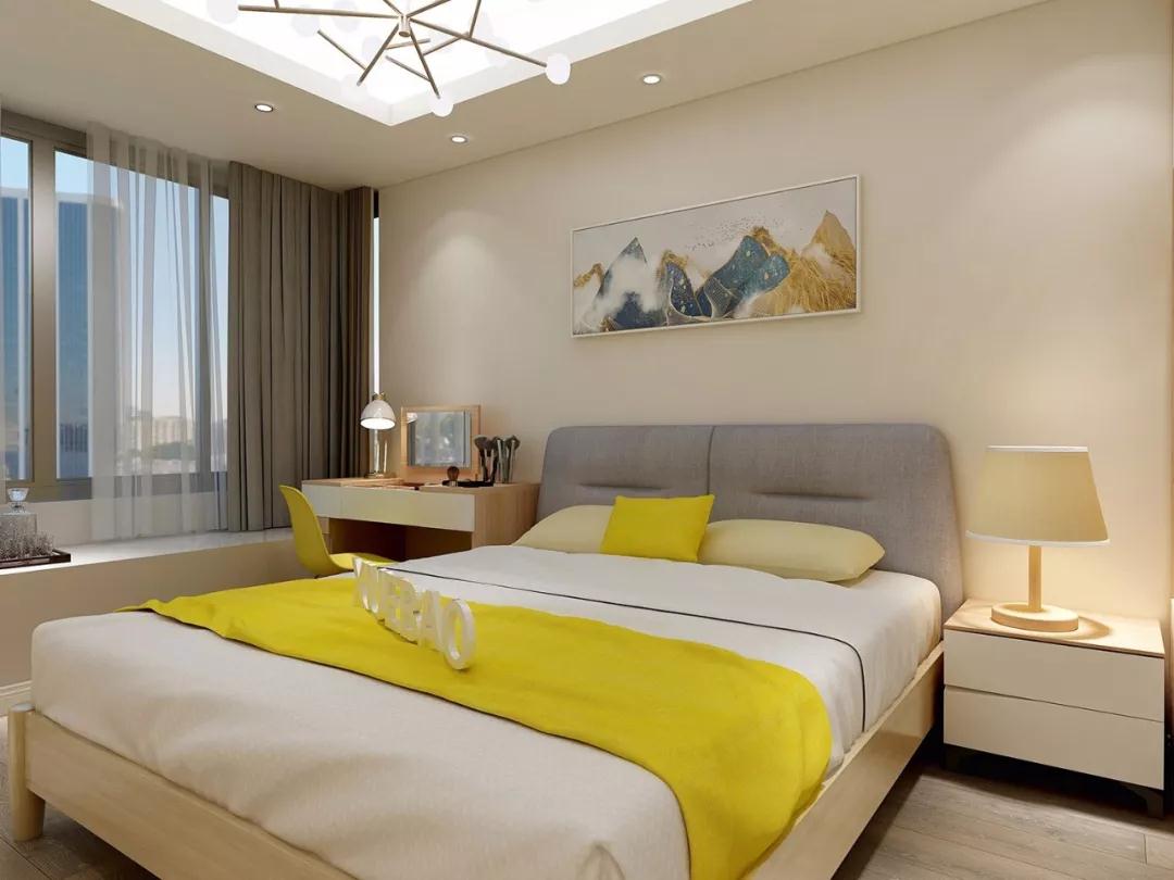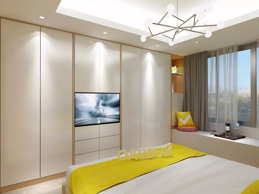 主臥柜體滿墻到頂設(shè)計(jì),空間利用追求極致。休息區(qū)、儲(chǔ)物區(qū)、梳妝區(qū)、休閑區(qū)、視聽(tīng)區(qū)五大功能分區(qū),在空間展現(xiàn)淋漓盡致,完美滿足生活需求。書桌臺(tái)巧妙設(shè)計(jì)梳妝收納格,功能不要太強(qiáng)大哦。同時(shí),選用明亮色系檸檬搭配,讓空間頓生活潑俏皮氣息。