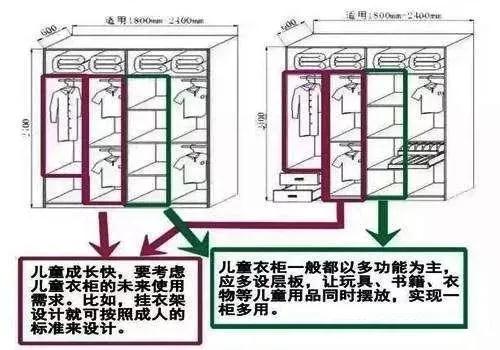 柜內(nèi)設(shè)計(jì)物品疊放區(qū)必須要有,疊放孩子的小衣物放儲(chǔ)物箱,掛衣區(qū)不需要太多,盡量底一些,可以讓孩子自己找衣服換衣服,鍛煉孩子的自理能力。柜子所有的五金都需要有緩沖阻尼功能,避免孩子夾手。