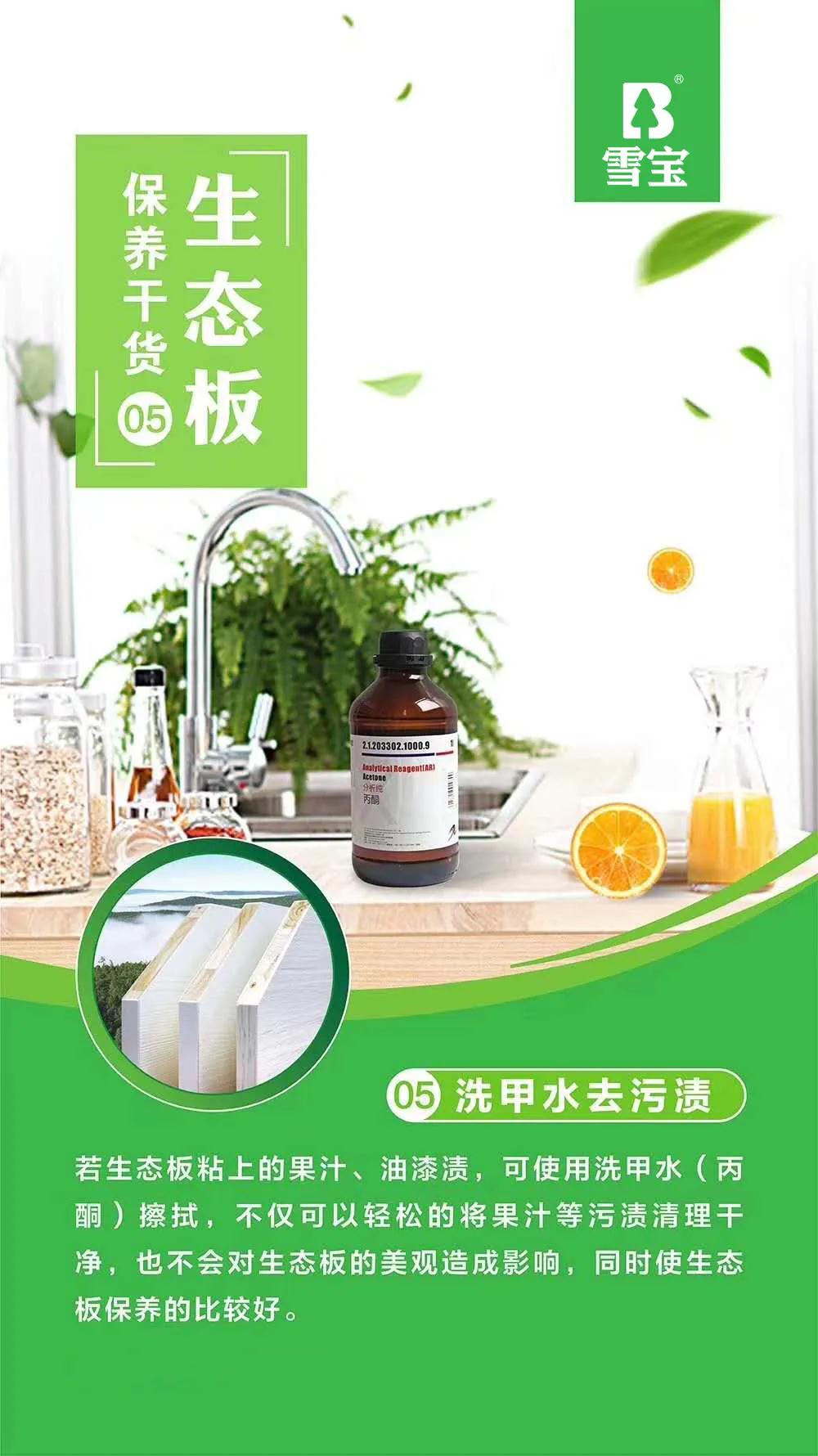 如今,生態(tài)板家具已走進千家萬戶,正是因為生態(tài)板要比其它類別的板材在使用性能方面要穩(wěn)定的多,握釘力強,平整度高。而且環(huán)保等級高,可以達到E0級,甚至遠優(yōu)于國家E0級環(huán)保等級標(biāo)準(zhǔn),譬如雪寶生態(tài)板系列產(chǎn)品。在日常生活中,家中難免有熊孩子亂涂亂畫,或是不小心弄臟了等常見污染物,那么用生態(tài)板做的家具該如何正確保養(yǎng)呢?