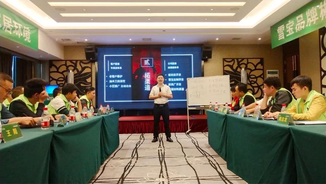 本次活動圍繞一戰(zhàn)而定“兩升一落、十五字方針”發(fā)展戰(zhàn)略,與經(jīng)銷商展開深入講解落地優(yōu)裝的必然性,以及雪寶家具板介紹、優(yōu)裝產品介紹等課程分享,同時,進行區(qū)域訂貨政策宣導。