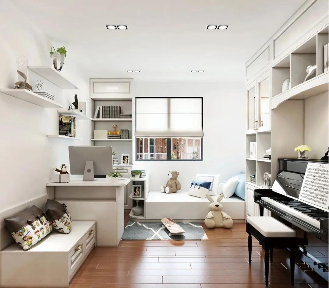 其次,飄窗和書桌連在一起,這種設(shè)計(jì)節(jié)省了空間,更能合理的利用房間的寬度,滿足孩子的學(xué)習(xí)需求且陽(yáng)光充足。
