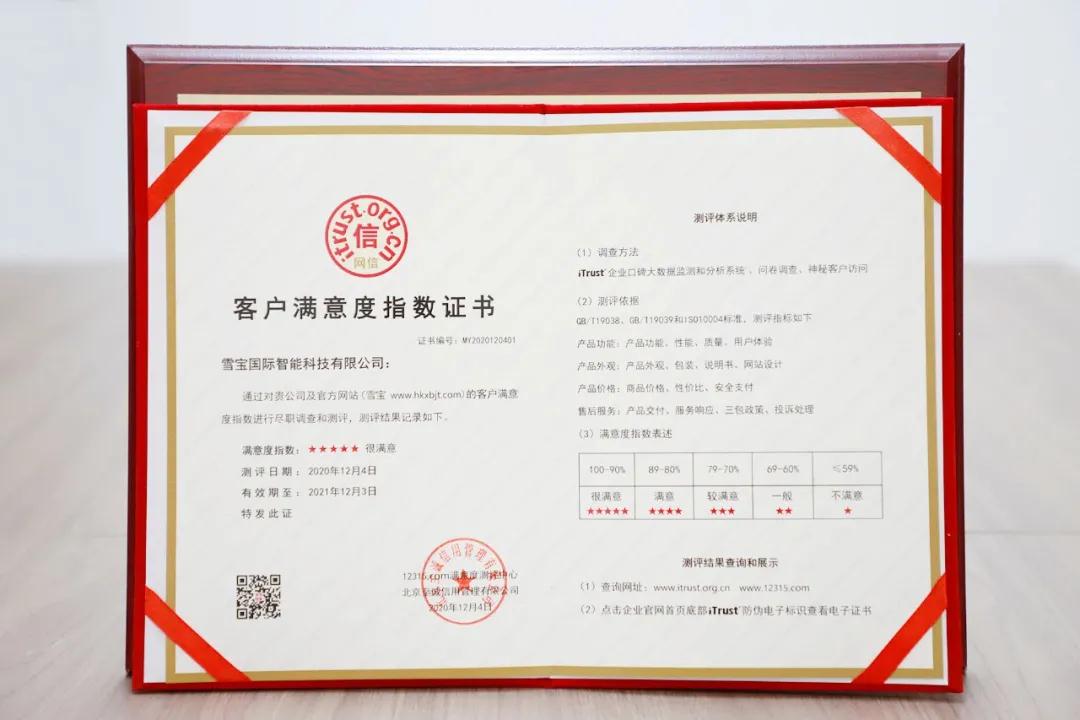 品牌發(fā)展再結(jié)碩果,雪寶榮獲“客戶滿意度五星證書”!
