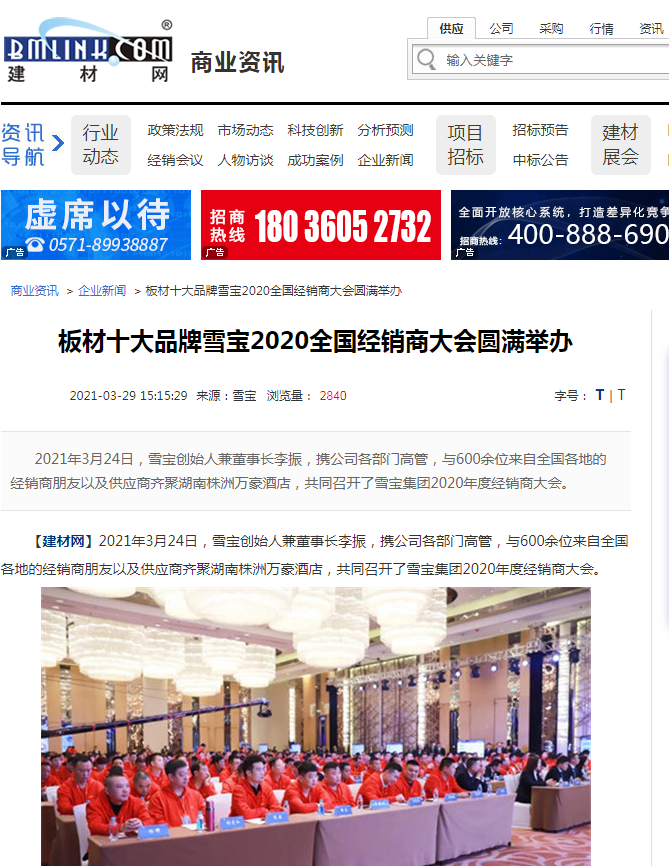 板材十大品牌雪寶火了!全國(guó)媒體爭(zhēng)相報(bào)道雪寶經(jīng)銷(xiāo)商年會(huì)盛況