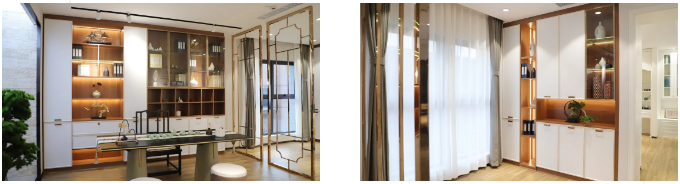 現(xiàn)代簡(jiǎn)約風(fēng)格系列之榻榻米、入戶柜、鞋柜等呈現(xiàn),無(wú)論是板材花色搭配上還是點(diǎn)綴色的運(yùn)用上都相得益彰,給人親切的家居溫馨感的同時(shí)又極具質(zhì)感,完美的將品牌“健康·時(shí)尚·品質(zhì)·品味”的產(chǎn)品理念極致體現(xiàn)。