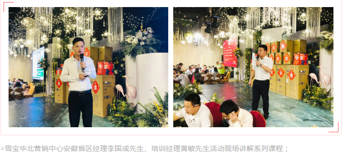 雪寶華北營銷中心安徽省區(qū)經(jīng)理李國成先生、培訓(xùn)經(jīng)理黃敏先生活動(dòng)現(xiàn)場(chǎng)講解系列課程;