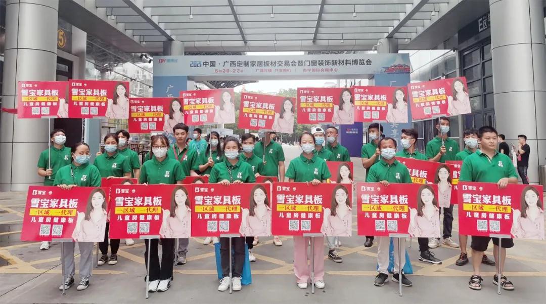 在本次2021廣西·南寧建博會會場,雪寶廣告位優(yōu)勢明顯、效果顯著。同時,穿著“綠馬甲”的雪寶家人穿梭展會現(xiàn)場儼然成為展會上一道亮麗的風(fēng)景線,在本次展會上,成績可觀。收獲諸多雪寶家具板意向加盟商,對雪寶品牌也紛紛豎起大拇指