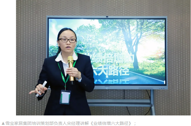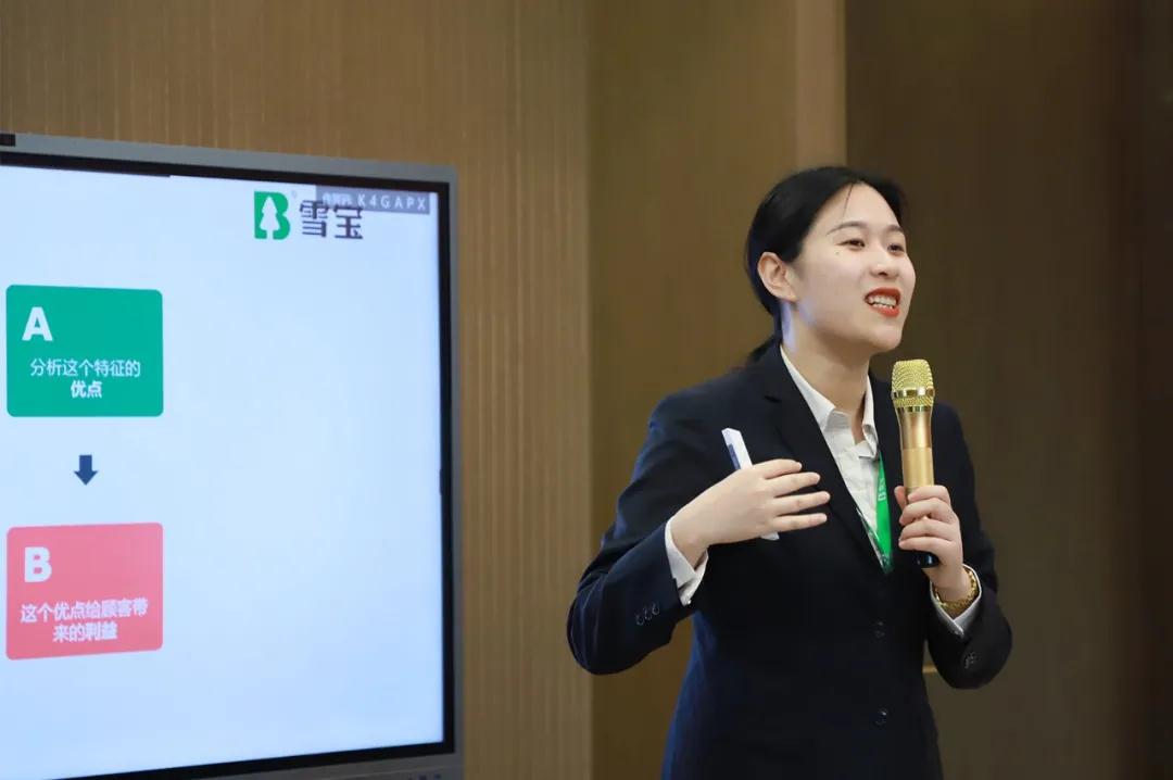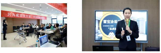 雪寶集團(tuán)培訓(xùn)講師謝佳妤老師講解《抗菌防霉板》、《涂裝板》、《雪寶五金》、《雪寶FABE銷(xiāo)售法則》系列課程;
