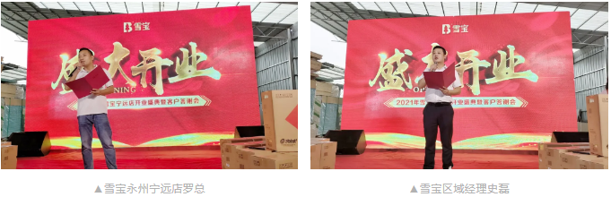 因酒店接納容量不足,本次答謝會(huì)最終選在雪寶寧遠(yuǎn)店羅總自家倉(cāng)庫(kù)舉辦,讓每一位來(lái)賓朋友近距離親身體驗(yàn)雪寶系列產(chǎn)品的同時(shí),也充分顯現(xiàn)雪寶品牌在寧遠(yuǎn)地區(qū)的強(qiáng)大實(shí)力。