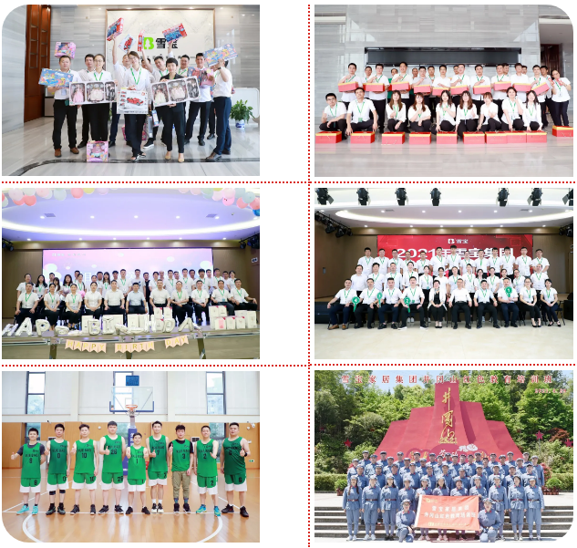 雪寶企業(yè)活動(dòng)一覽,如節(jié)假日福利發(fā)放、員工生日會(huì)、培訓(xùn)學(xué)習(xí)會(huì)、籃球賽、井岡山之旅等。在企業(yè)穩(wěn)健發(fā)展的過程中,雪寶人自始至終將企業(yè)文化貫徹落實(shí)并精進(jìn)于日常工作生活中,并孜孜不倦持續(xù)踐行;