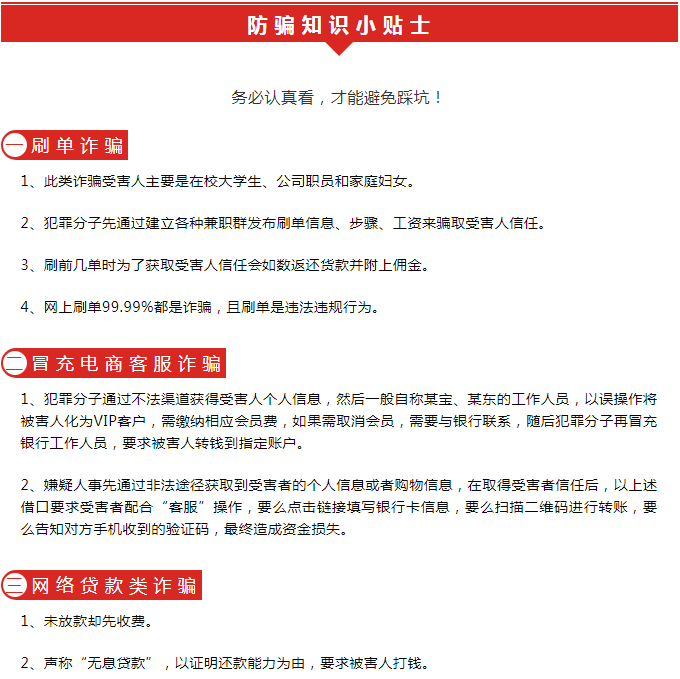 隨著社會不斷進(jìn)步發(fā)展,電信詐騙的手段也層出不窮、防不勝防,中招者損失少則幾千元、多則數(shù)百萬元,進(jìn)而引發(fā)家庭破裂。更有甚者釀成無法挽回的悲劇,強(qiáng)化防騙意識,共筑安全“防火墻”迫在眉睫!