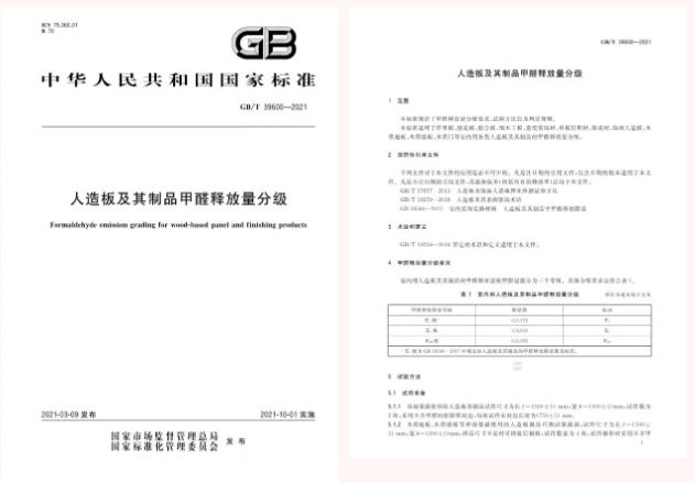 由全國人造板標(biāo)準(zhǔn)化技術(shù)委員會歸口管理的GB/T 39600-2021《人造板及其制品甲醛釋放量分級》和GB/T 39598-2021《基于極限甲醛量的人造板室內(nèi)承載限量指南》正式發(fā)布。新國標(biāo)于2021年10月1日正式實施,E0級正式納入分級標(biāo)準(zhǔn),獲得國家認(rèn)可,ENF級成為全球最高環(huán)保等級。
