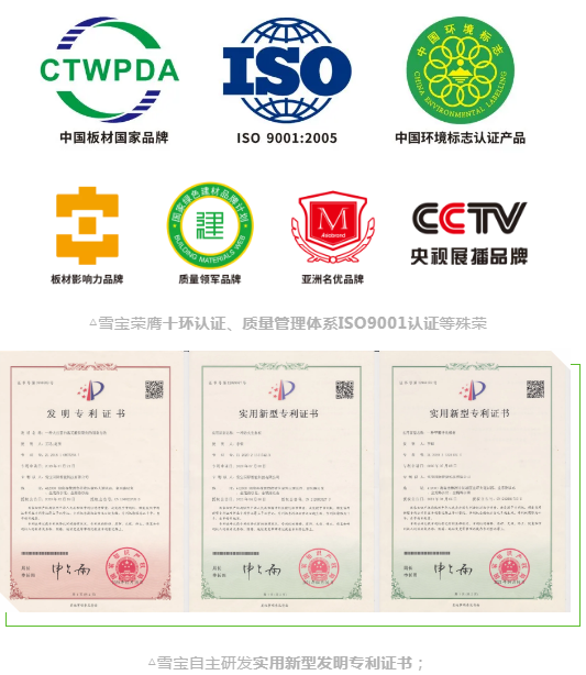 集“國字號”榮譽中國板材國家品牌、國家綠色建材品牌計劃【質(zhì)量領(lǐng)軍品牌】、中國家居建材行業(yè)領(lǐng)軍品牌、定制家居領(lǐng)軍品牌等眾多榮譽于一身的雪寶,質(zhì)量和環(huán)保屬性早已刻入品牌的基因中并傳承。