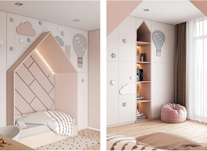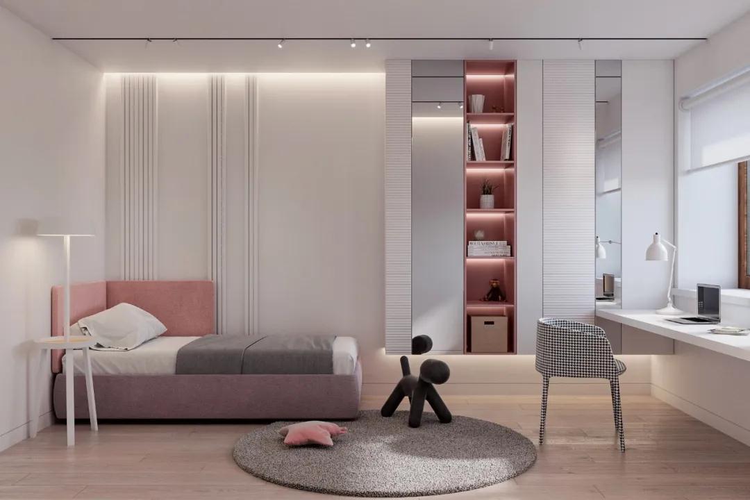 設(shè)計(jì)兒童房的時(shí)候,可以選擇衣柜、儲(chǔ)物柜、書桌、榻榻米結(jié)合的一體式設(shè)計(jì),房間形成一個(gè)整體,節(jié)約空間之余還能做好房間分區(qū)。