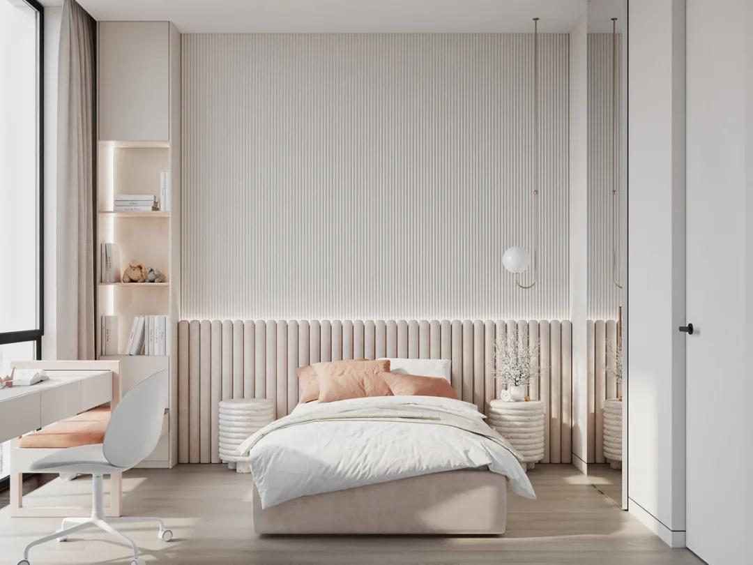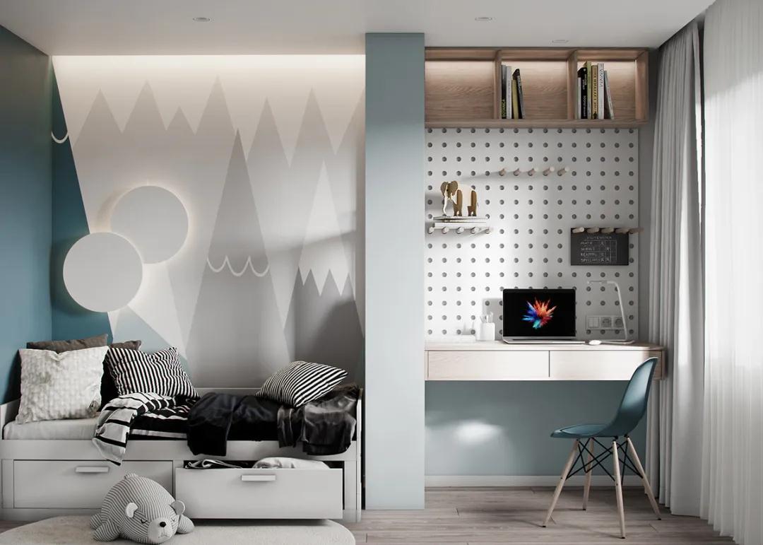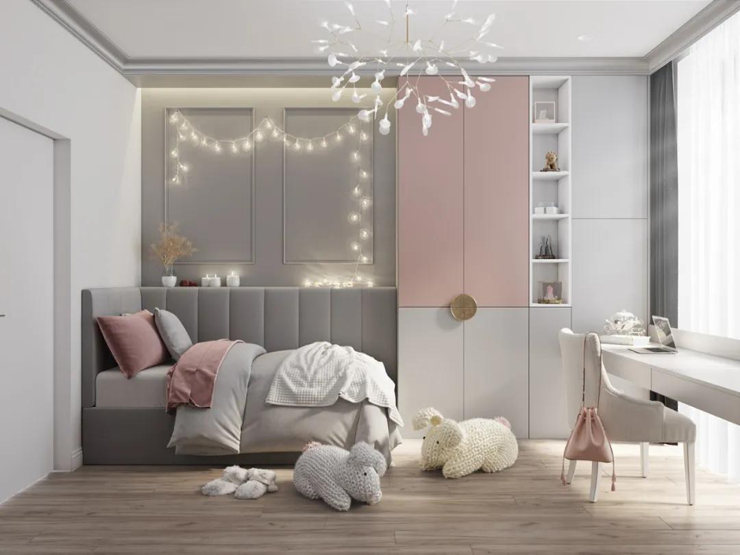 兒童房的背景色宜選擇淺色,如白色、淺灰色、原木色等百搭色。主體色的作用是突出空間重心,兒童房的主體色宜選用原木色、高級灰以及低飽和度的亮色,如藍(lán)色、黃色、粉色等。更多的“童趣”可以體現(xiàn)在兒童房的點(diǎn)綴色上,如床品、窗簾、抱枕、玩具、掛畫等軟裝飾品。