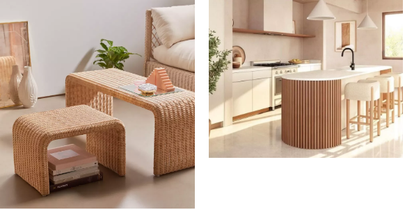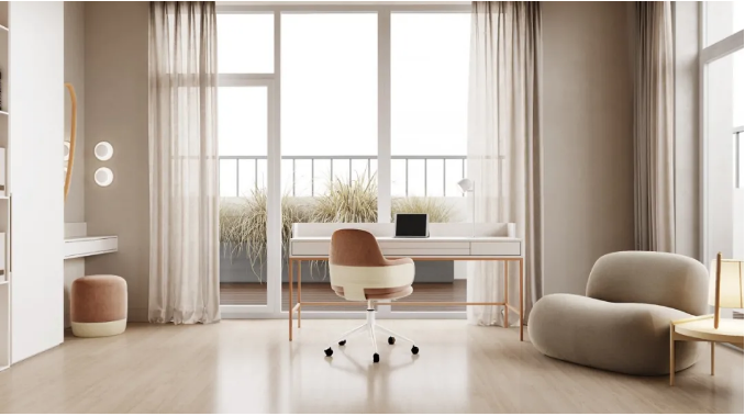 在家具材質的選擇上,建議選用有肌理感的羊羔絨、絨布、亞麻、亞克力、原木、藤編等,自帶溫暖氣息,和諧搭配整體空間氛圍。