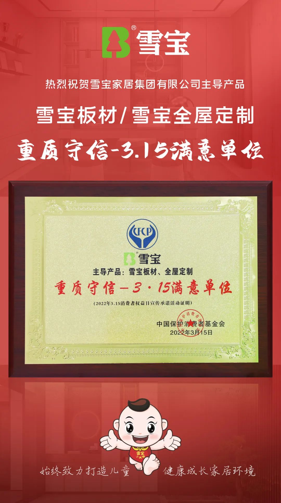 匠心品質(zhì),誠(chéng)信品牌;雪寶榮膺“重質(zhì)守信-3.15滿意單位”