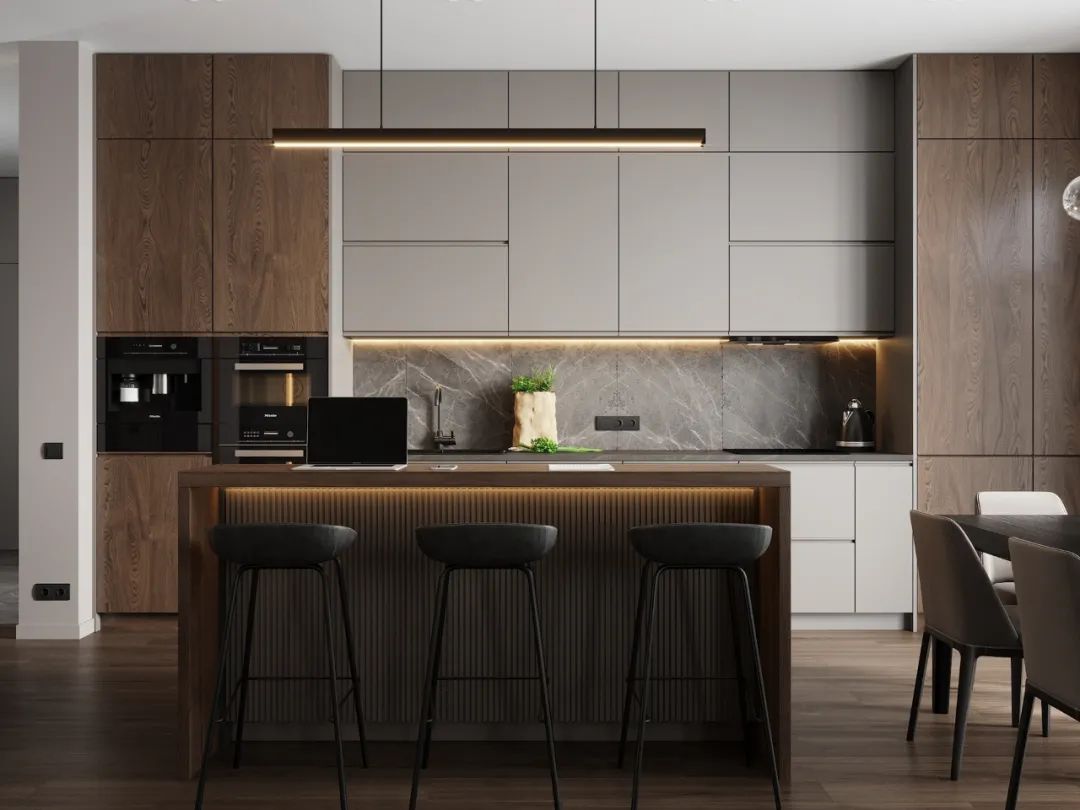 從設(shè)計(jì)角度看,吧臺經(jīng)常出現(xiàn)在客廳空間或餐廳空間中,開放式廚房的吧臺,不僅在空間上起到分隔的作用,還可以當(dāng)小餐桌,喝酒聊天,或者做為小工作區(qū),看書辦公,不僅美觀還實(shí)用。今天就跟大家分享三種年輕人最愛的餐廚吧臺一體設(shè)計(jì)。