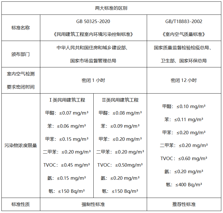 GB/T 18883-2002為國家推薦性標準,檢測前需至少密閉12小時,為極限環(huán)境下檢測給出的限值。