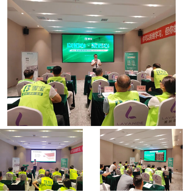 活動現(xiàn)場,雪寶華南營銷中心主動營銷部張經(jīng)理詳細講解雪寶優(yōu)裝落地運營及介紹雪寶PET產(chǎn)品。從現(xiàn)狀分析、品牌定制、生產(chǎn)加工、市場競品等方面深入探討以及明確落地優(yōu)裝的必然性,圍繞終端形象、門店運營、團隊管理、渠道開發(fā)、生產(chǎn)賦能、設(shè)計賦能、客戶維護等維度剖析雪寶優(yōu)裝的先進性和優(yōu)越性。通過實踐與發(fā)展證明,以及雪寶優(yōu)裝取得的顯著成效,充分說明我們從傳統(tǒng)板材營商轉(zhuǎn)型到雪寶優(yōu)裝這一條路是行得通的!
