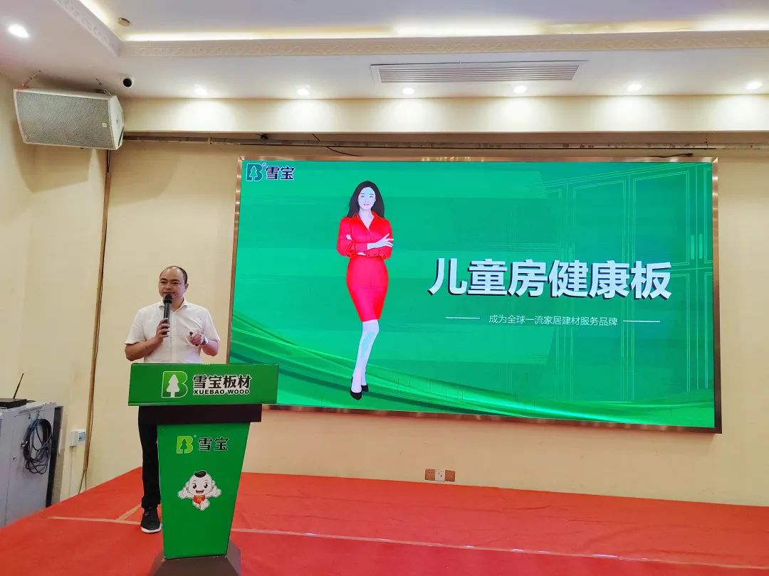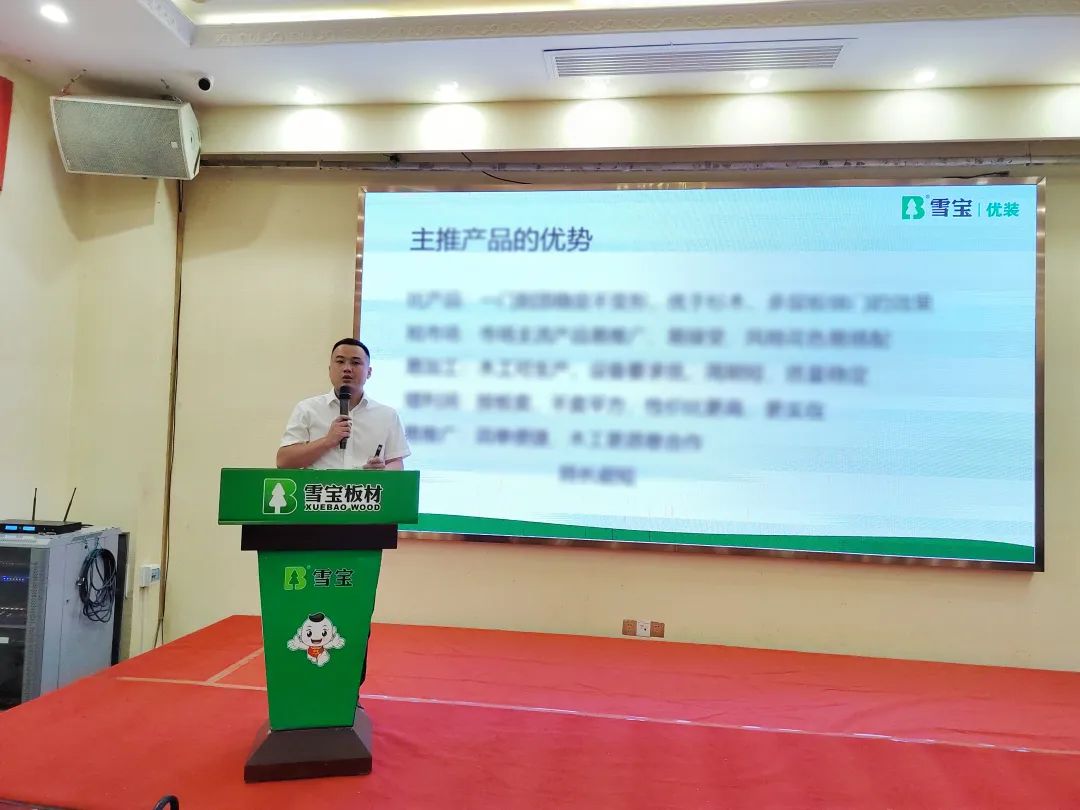 區(qū)域經(jīng)理羅興進(jìn)行雪寶品牌介紹,從品牌硬核實(shí)力、核心定位、獎(jiǎng)項(xiàng)榮譽(yù)、重大事件、行業(yè)口碑等方面深入闡述,突出強(qiáng)化“雪寶板材兒童房健康板”的獨(dú)特差異化核心優(yōu)勢和行業(yè)地位。