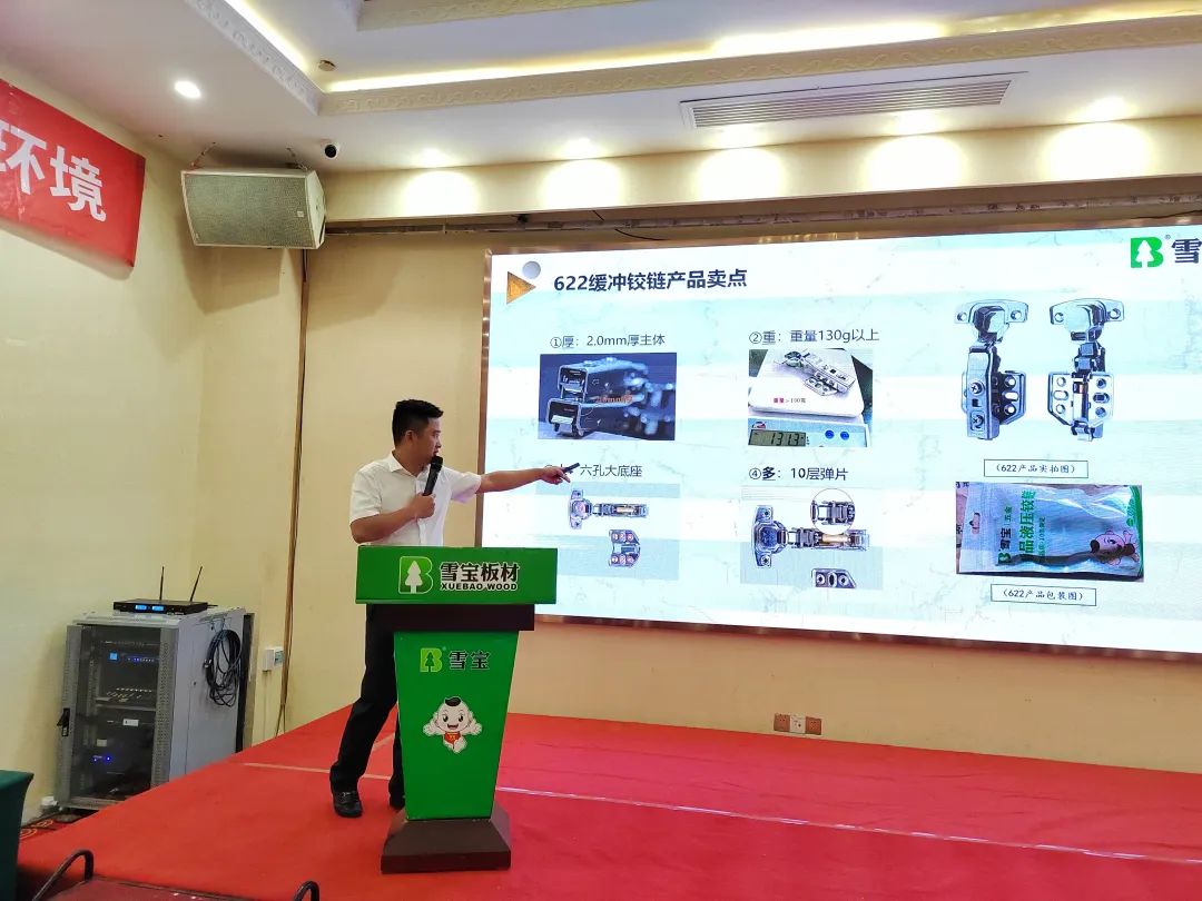 好產(chǎn)品價(jià)值的直接體現(xiàn)離不開專業(yè)的產(chǎn)品知識宣導(dǎo)。會上,五金部易磊進(jìn)行了雪寶五金產(chǎn)品的介紹,雪寶華南優(yōu)裝部經(jīng)理譚勤智作雪寶PET產(chǎn)品的介紹。