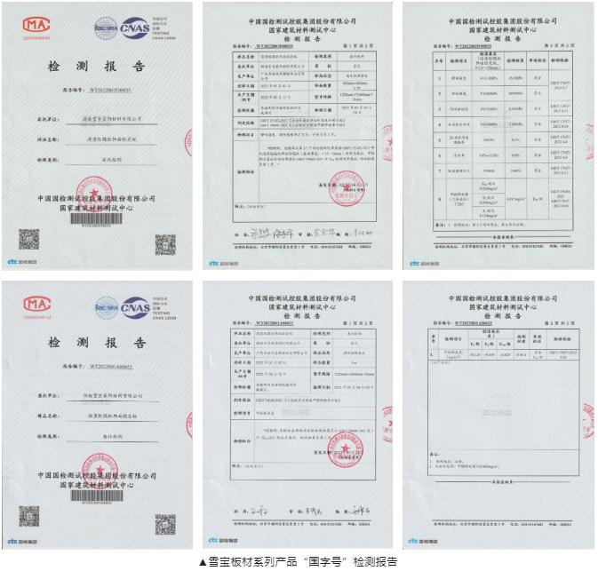 雪寶板材成功獲得中國國檢測試控股集團的國家建筑材料測試中心的出具ENF級檢測報告證書,是對產品環(huán)保品質的肯定和信賴。新國標施行后,標注國標ENF的產品是品質的象征,而“國字號”的ENF級檢測證書更是含金量十足,直接受到國家法律的保護和監(jiān)督。所以,消費者在購買ENF級板材時,認準“國字號”ENF級檢測報告更放心!