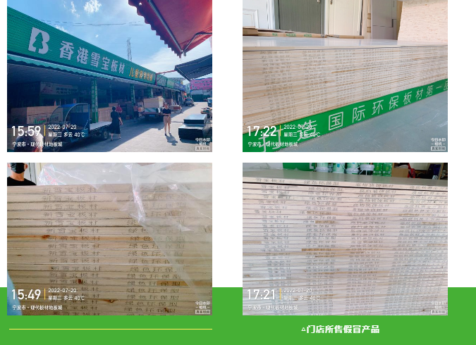 2022年7月中旬,雪寶家居集團督查部接到浙江寧波現(xiàn)代市場寧波鄞州恒達木業(yè)五金經(jīng)營部板材涉嫌造假舉報后,派人到現(xiàn)場督查并向?qū)幉ㄊ袌霰O(jiān)督管理局舉報投訴。通過查證,當事人寧波鄞州恒達木業(yè)五金經(jīng)營部未經(jīng)公司授權(quán),在其經(jīng)營場所陳列、對外銷售標有“雪寶”、“新雪寶”字樣的板材(“雪寶”、“新雪寶”字樣標在板材側(cè)面),涉案經(jīng)營額共計23600元。且當事人店門口招牌和經(jīng)營場所柱子上標有“香港雪寶板材”字樣。經(jīng)查明,雪寶與當事人簽署的經(jīng)銷合同時效在2017年年初就已到期。