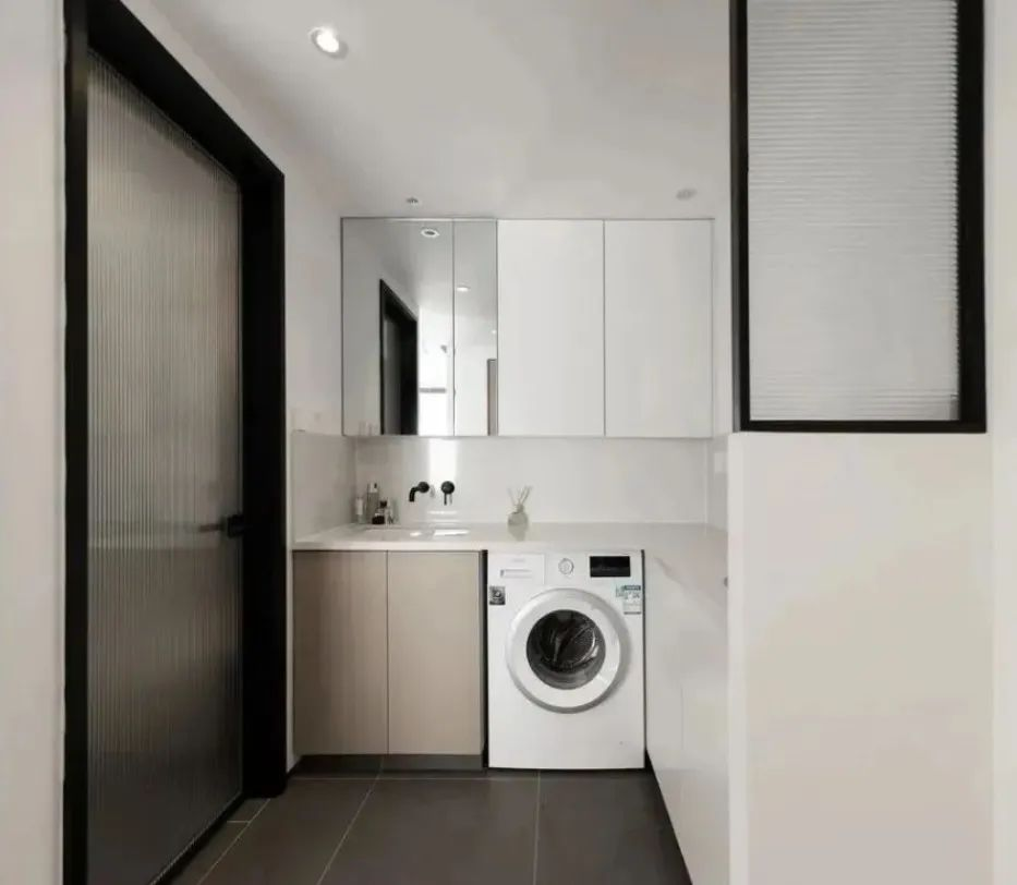 沒有絲毫多余的裝飾物,簡單的線條提升了高級感,用深淺不一的色塊進行空間劃分,進一步優(yōu)化了布局。