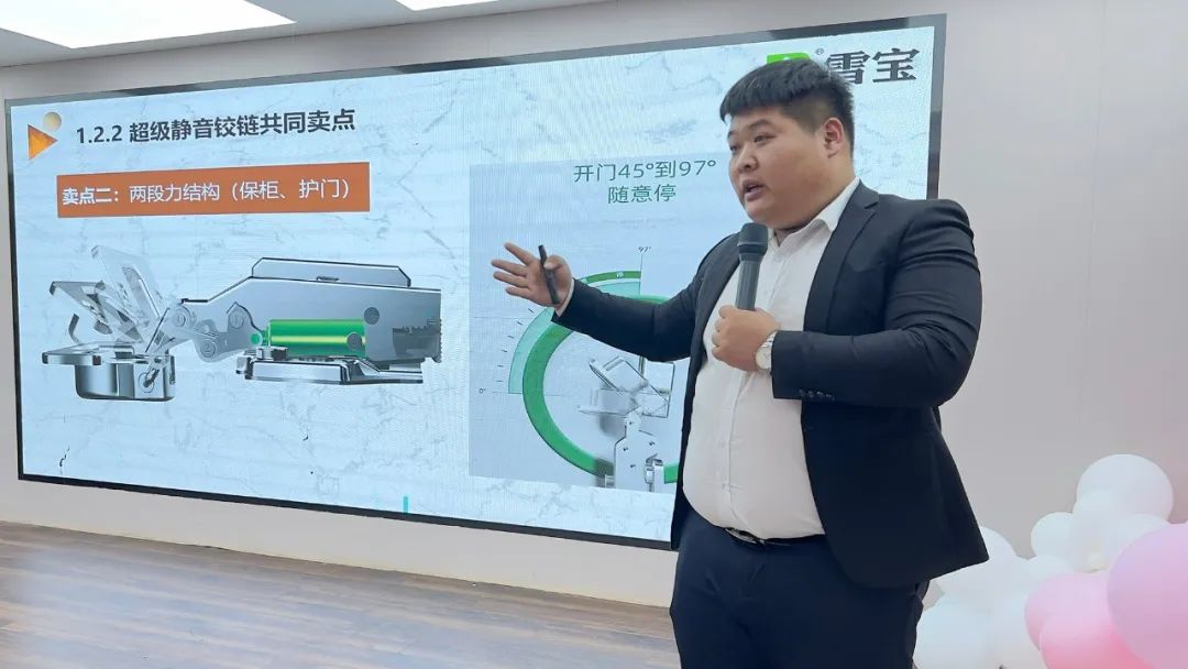 雪寶華北家具板事業(yè)部山東省區(qū)經(jīng)理趙蘭仕先生現(xiàn)場(chǎng)講解雪寶五金產(chǎn)品知識(shí),從產(chǎn)品研發(fā)、使用性能、生產(chǎn)工藝、營銷設(shè)計(jì)、產(chǎn)品質(zhì)檢體驗(yàn),以及品牌強(qiáng)大售后服務(wù)等多維度展開系統(tǒng)、專業(yè)的介紹,幫助各位合作伙伴在一次的清晰了解雪寶五金的核心差異化優(yōu)勢(shì)。