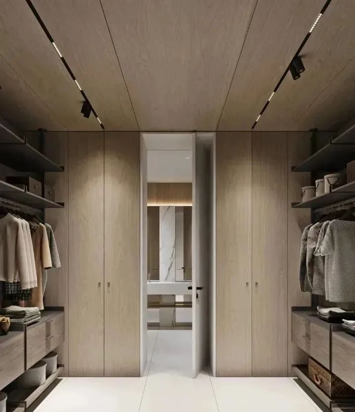 如果你覺得掛衣區(qū)太浪費空間,可以設置多層隔板來做疊衣區(qū),疊衣區(qū)的收納功能比掛衣區(qū)要強。