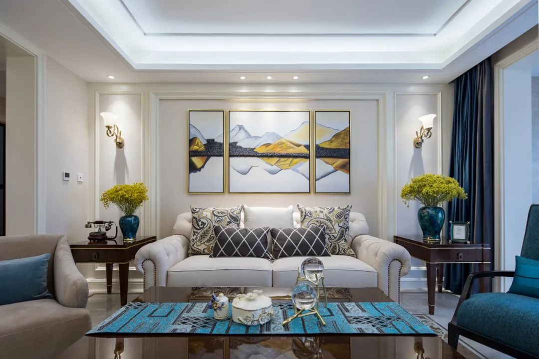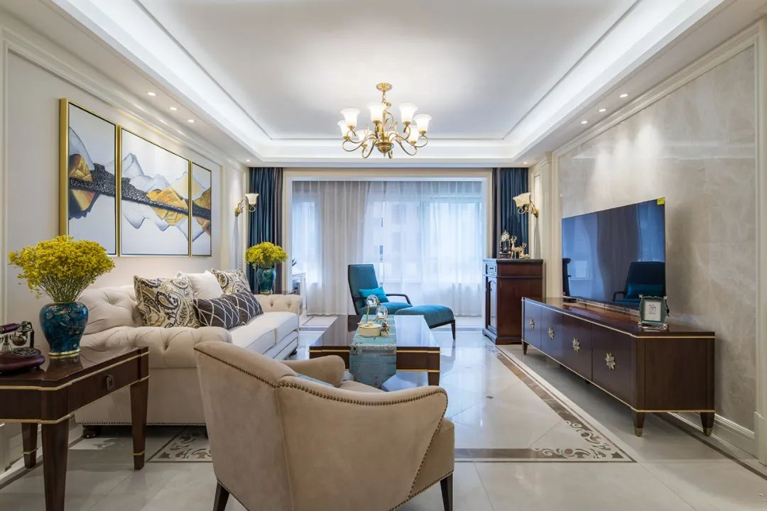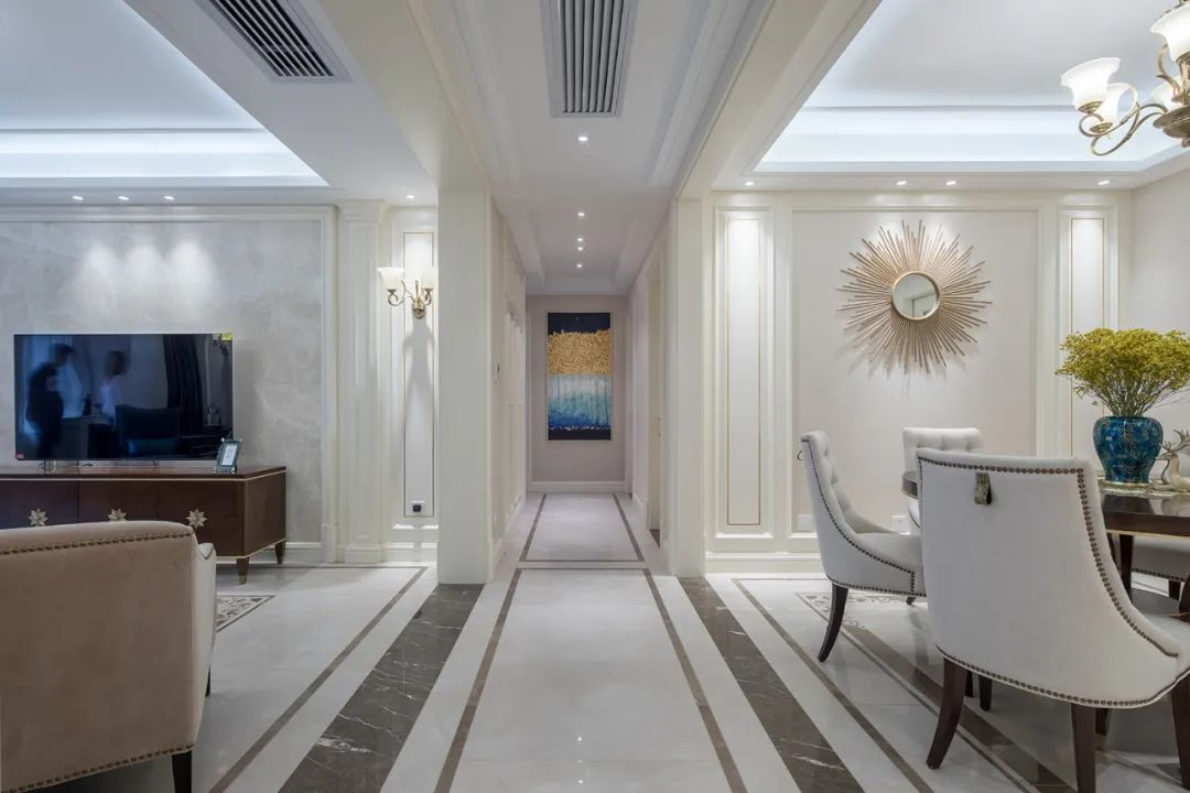 在客廳的設(shè)計上,點(diǎn)線面的結(jié)合流暢而利落,讓整個空間立體飽滿,無論是質(zhì)感十足的硬裝,還是配飾豐富的軟裝,以及點(diǎn)睛之筆的工藝品,剛與柔、深與淺、明與暗的多重對比呈現(xiàn)出交相輝映的層次變化,看似不經(jīng)意,卻又足夠浪漫無比。
