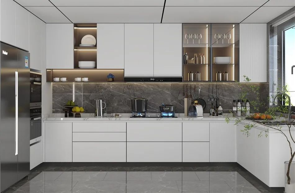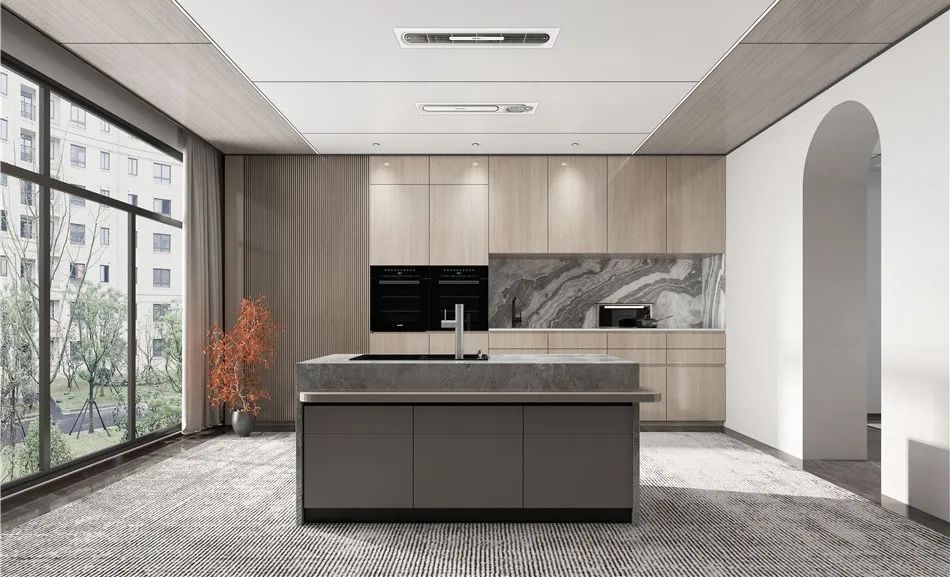 對于廚房的設(shè)計,追求空間變化的連貫性,布局合理劃分,定制櫥柜收納充足,且具美觀性,大面積白色基調(diào)讓廚房在內(nèi)斂之中彰顯簡潔大氣,展現(xiàn)出廚房應(yīng)有的干凈樣貌。顯然,下廚烹調(diào)美味的背后亦是暖心滿滿的幸福感。