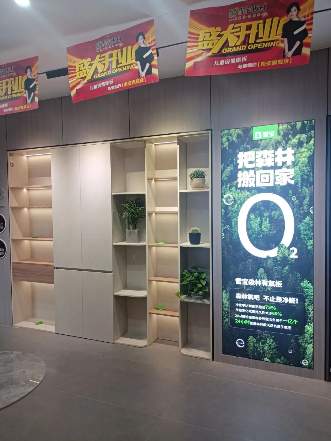 雪寶定位兒童房健康板的獨特差異化優(yōu)勢,讓品牌理念和高環(huán)保高品質(zhì)產(chǎn)品等標(biāo)簽深入人心。雪寶泉州南安店在終端形象設(shè)計上,緊跟時代潮流,在門店產(chǎn)品陳列、全屋空間展示、門墻柜一體化設(shè)計等方面大力迎合消費趨勢,營造居家氛圍體驗感。