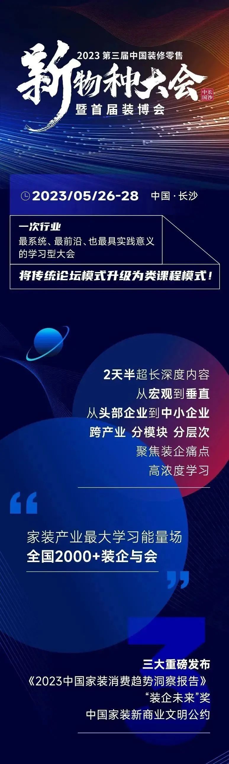 5月26-28日,湖南國際會展中心(芒果館二樓),“2023第三屆裝修零售新物種大會暨首屆裝博會”給你答案!