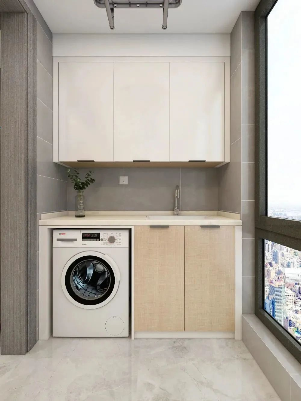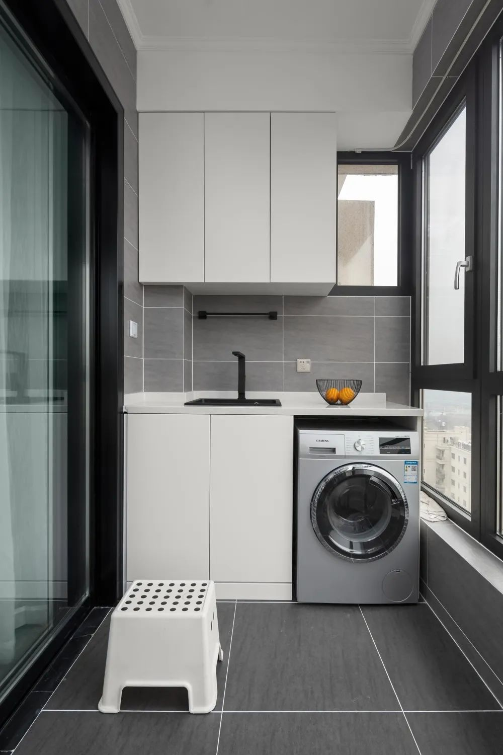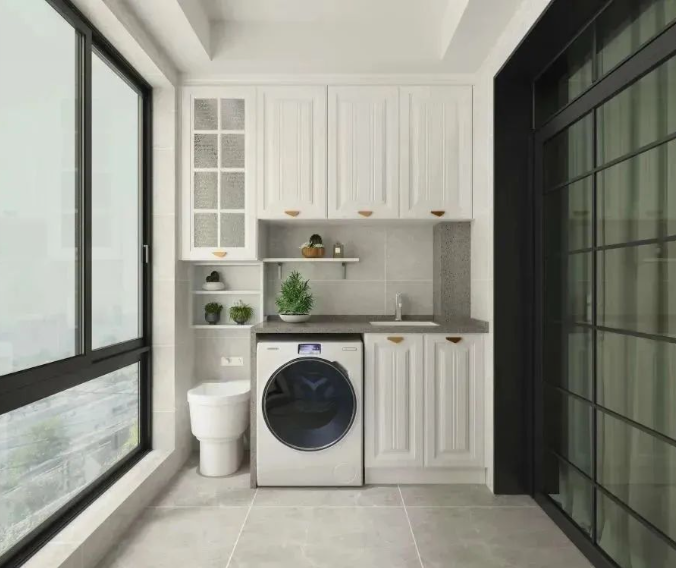 浴室空間不夠,沒有單獨(dú)的洗衣間?不妨在陽臺(tái)為洗衣機(jī)量身定制一個(gè)小窩。只需一個(gè)柜,不僅洗衣房有了,還一并解決了家里的收納問題。