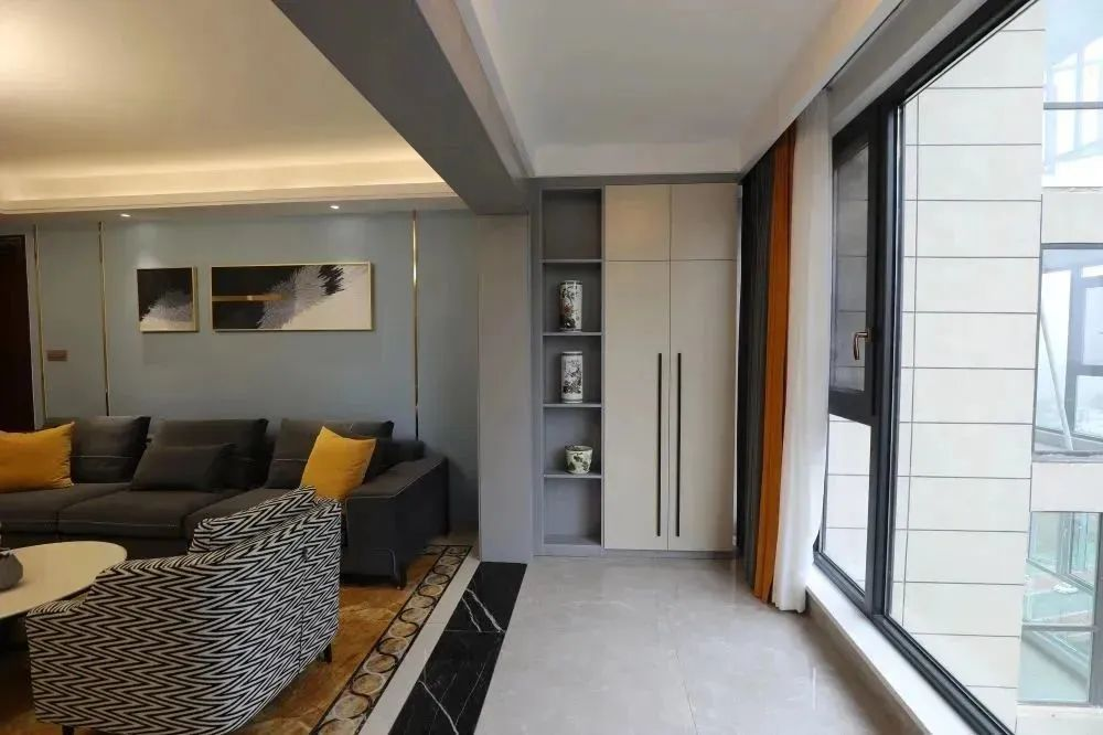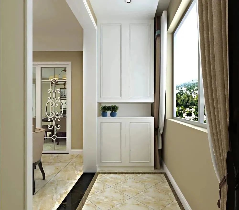 玄關(guān)空間太小,裝不下女士們的各式高跟鞋和長(zhǎng)靴該怎么辦?在陽臺(tái)的一邊或者整個(gè)空間定制一個(gè)儲(chǔ)物柜,收納空間倍增,相當(dāng)于多了一間儲(chǔ)物室。