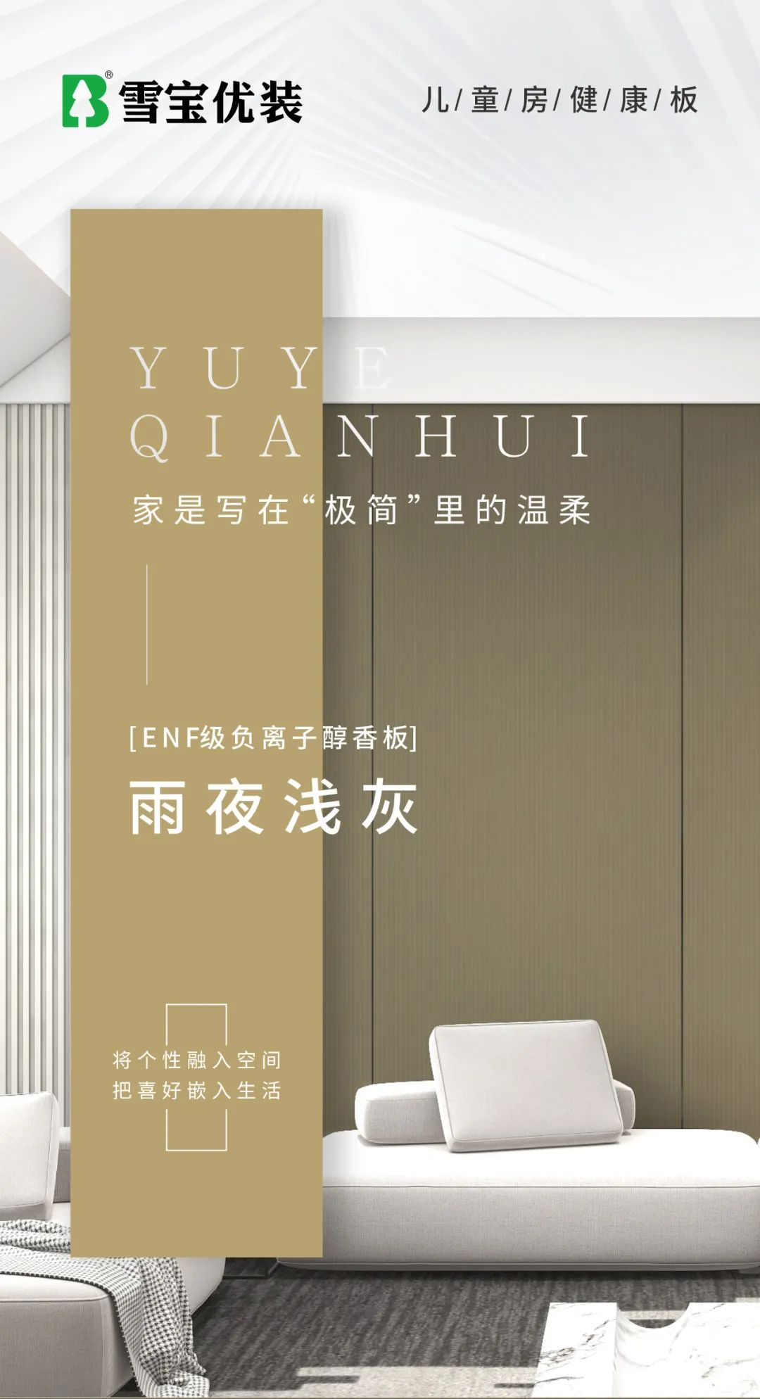 雪寶ENF負(fù)離子板材醇香板“雨夜淺灰”:家是寫在“極簡”里的溫