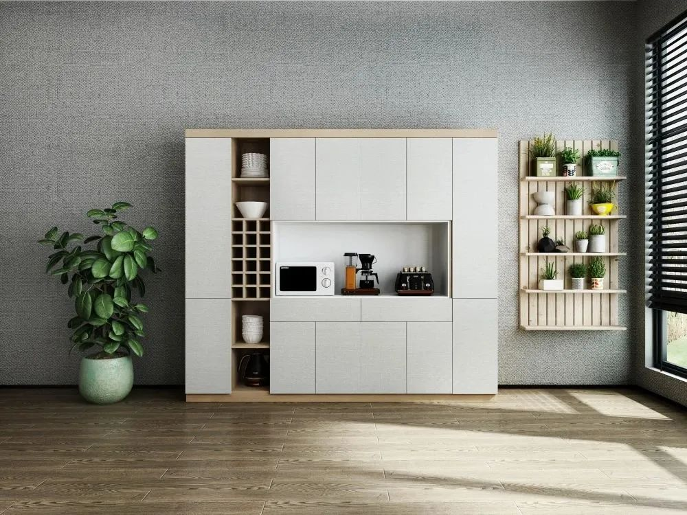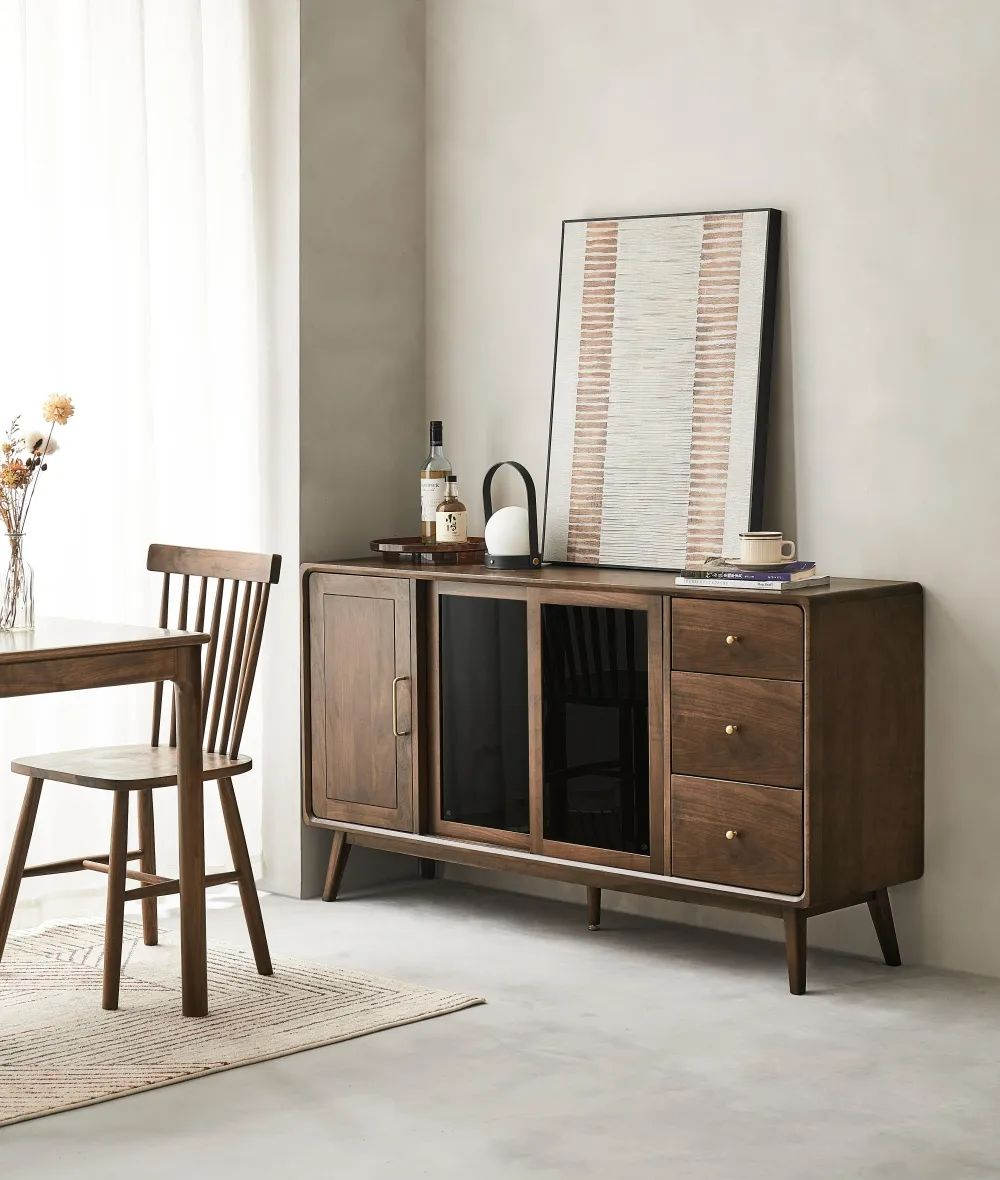 餐邊柜可以提供強(qiáng)大的收納功能,像廚具、餐具、一次性水杯、茶具、零食等等大小物品,都可以收納在餐邊柜里面,避免家里到處都是雜物亂擺的情況。