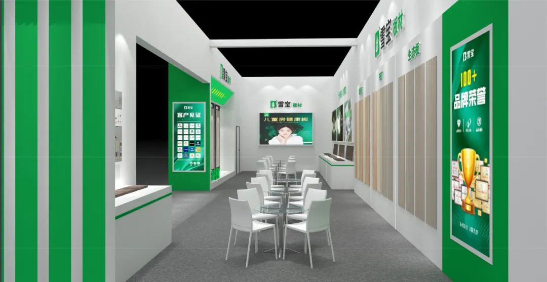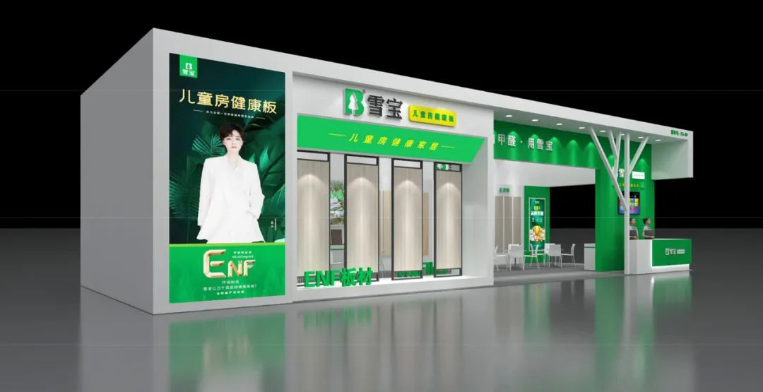 ▲雪寶展館效果圖屆時,雪寶品牌展館將為廣大蒞會來賓朋友呈現(xiàn)品牌風(fēng)采、ENF級系列產(chǎn)品(生態(tài)板/家具板/實木PET柜門板等)、雪寶五金等優(yōu)異產(chǎn)品。依托雪寶全產(chǎn)業(yè)鏈打通,實現(xiàn)了原木材到成品柜的自研自產(chǎn),層層把關(guān)保證產(chǎn)品品質(zhì),以及功能型板材代表“雪寶森林有氧板”、“抗菌防霉板”等產(chǎn)品介紹,為蒞會的裝企伙伴們?nèi)轿怀尸F(xiàn)“兒童房健康板”創(chuàng)立者以及環(huán)保標(biāo)準(zhǔn)首倡者的雪寶風(fēng)采。