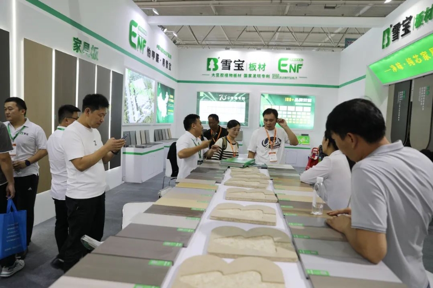 展會期間,現(xiàn)場人氣爆棚,展位人頭攢動,從最初被展館精心的設計所吸引駐足,再到后來深入了解板材生產工藝以及展館內陳列的優(yōu)質板材產品,雪寶展位引來無數(shù)參展者駐足流連。
