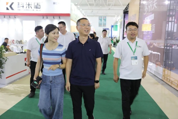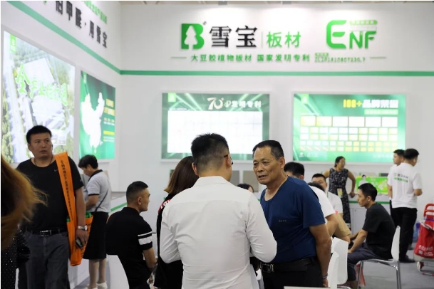 數(shù)年前,雪寶板材就已通過研發(fā)出遠超國標環(huán)保標準數(shù)10年的E0級,目前全系產品又率先實現(xiàn)升級ENF級,環(huán)保品質一直走在行業(yè)前列。同時,通過掌握核心環(huán)保技術力量零醛添加的“大豆膠”國家發(fā)明專利,讓雪寶板材的產品環(huán)保力遠優(yōu)于市面上多數(shù)板材產品!▲集團董事長攜部分高管走進展會現(xiàn)場并與合作伙伴進行溝通