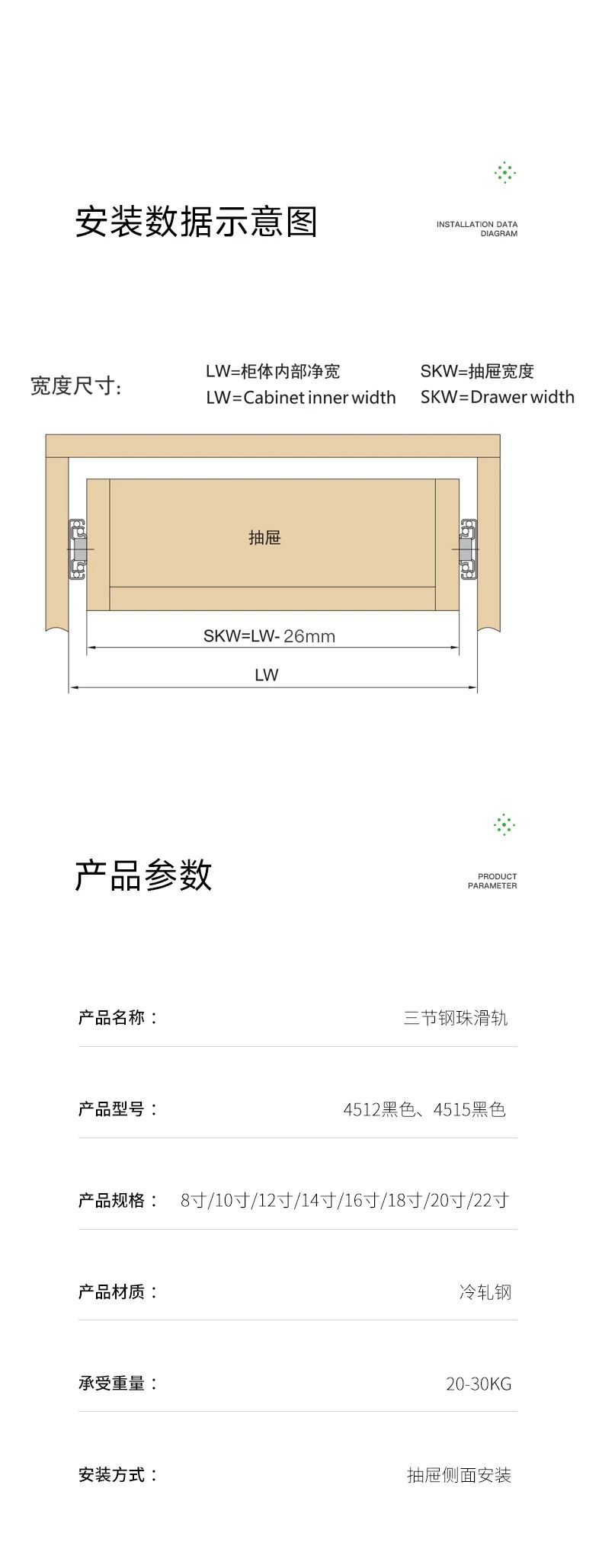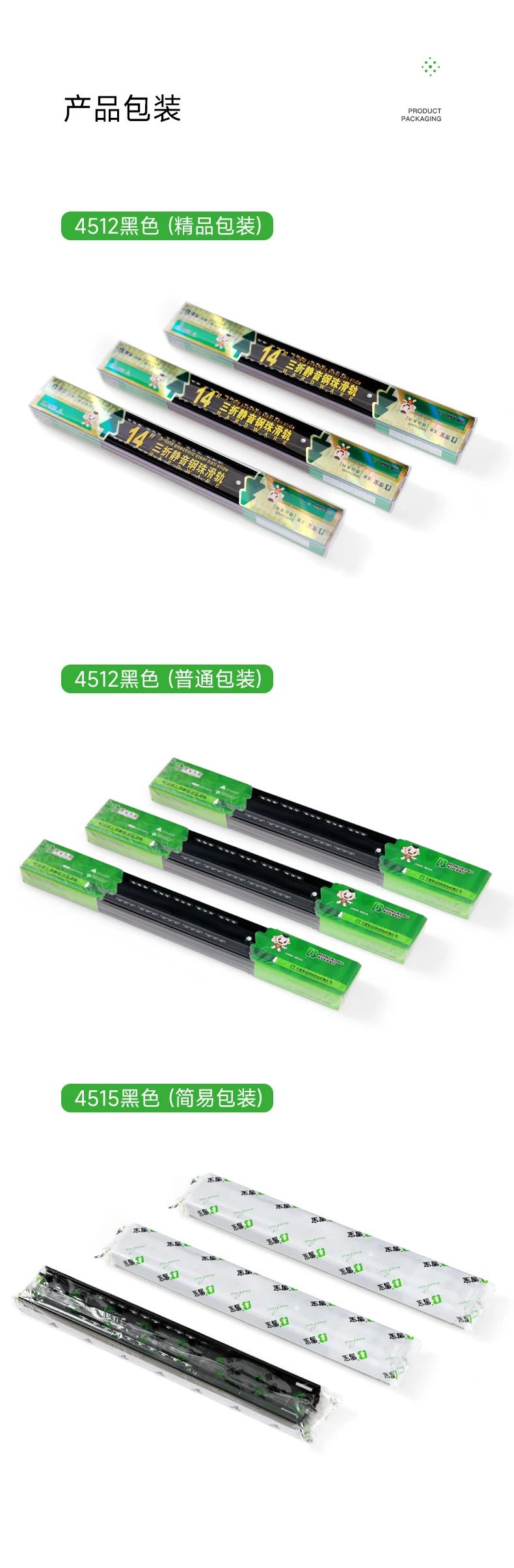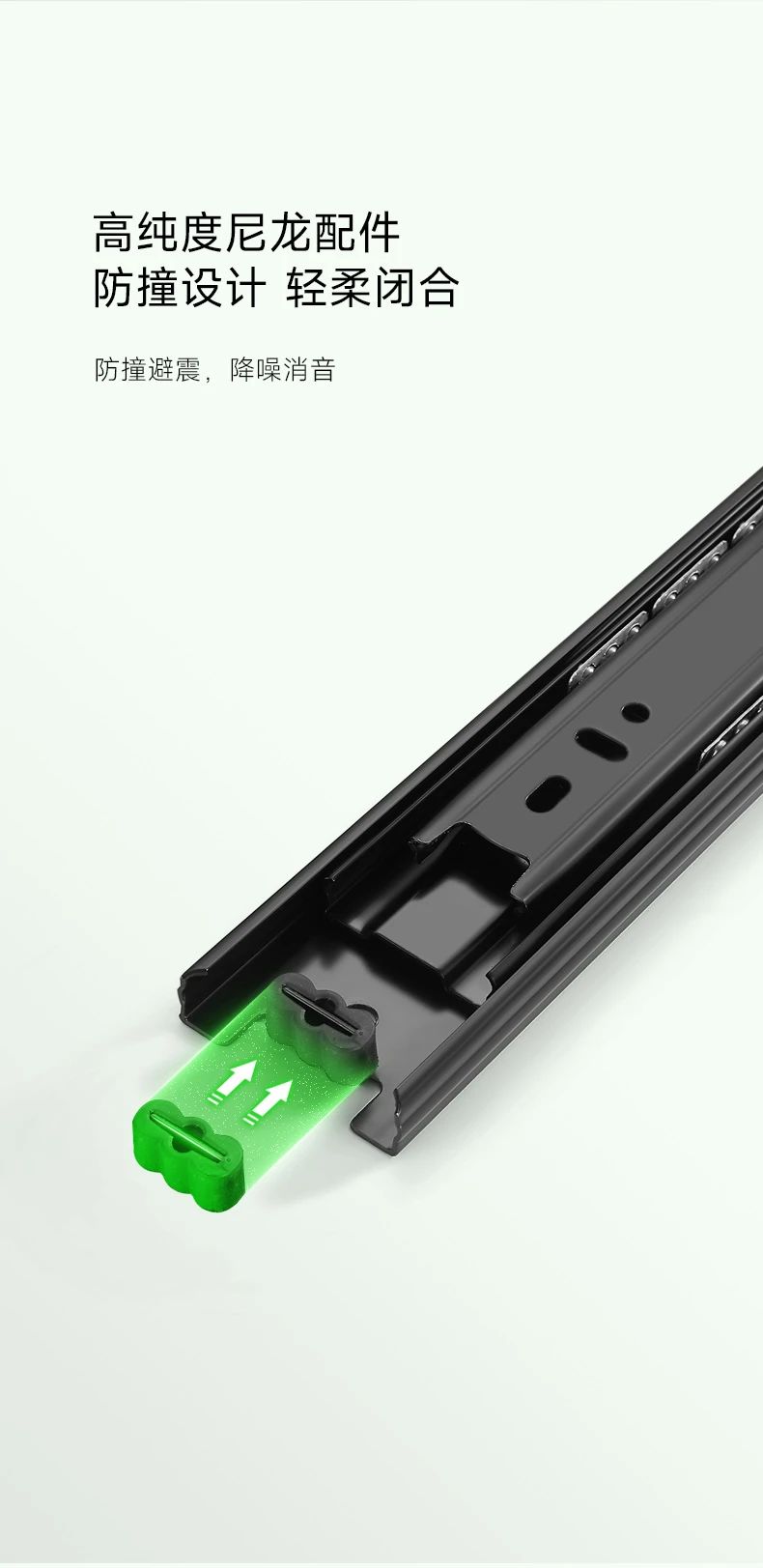 抽屜在家具中的使用很關(guān)鍵,對于抽屜而言,滑軌就是抽屜的“心臟”。于家居收納中有著無與倫比的作用,讓空間在無序中建立有序。而抽屜的使用體驗(yàn),絕大程度上取決于滑軌。開合是否能順滑、能抽拉到什么程度、承重如何、會不會翻傾等問題,都跟滑軌有關(guān)系,因此選擇一個品質(zhì)好的滑軌很重要。雪寶4512黑色鋼珠三節(jié)滑軌,精工設(shè)計,內(nèi)置鋼珠,穩(wěn)定性強(qiáng),全程順滑到底。三節(jié)全拉出設(shè)計,抽屜空間一覽無余,物品收納整齊有序,取物更輕松。表面電鍍工藝,抗腐蝕,耐磨損,久用如新,無需頻繁更換?燎笃焚|(zhì)細(xì)節(jié),讓每一次推拉都是一種享受!