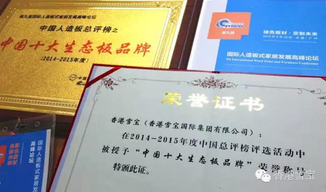 2015年3月16-17日,廣州頤和大酒店召開的第九屆人造板式家居發(fā)展高峰論壇,雪寶板材出席了本次高峰論壇并榮獲“中國十大生態(tài)板品牌”稱號。一直以來,雪寶人堅信天道酬"精",即用精銳的團隊通過精選原材料、精心生產(chǎn)與服務(wù),打造精致的雪寶系列產(chǎn)品,精耕細(xì)作拓展終端銷售渠道,滿足客戶優(yōu)中選精與精打細(xì)算的家居建材消費需求。