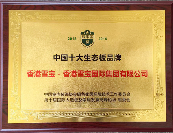 雪寶榮獲“2015—2016年度中國(guó)十大生態(tài)板品牌”