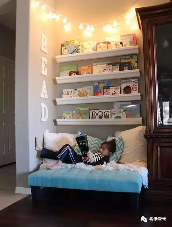 ▲利用房間的角落,做一個(gè)簡(jiǎn)易的閱讀角,培養(yǎng)孩子從小就閱讀的習(xí)慣。腹有詩書氣自華,愛讀書的人不管是氣質(zhì)還是修養(yǎng)都不會(huì)太差!